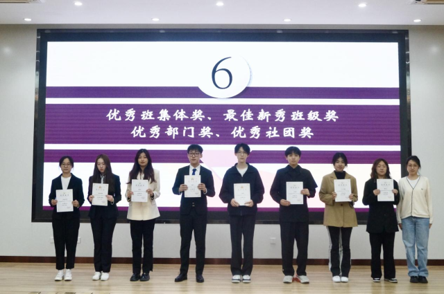 众擎易举,独力难成。2021、2022年,学院多个班集体、学生组织筹划举办多彩学生活动,出色完成各项任务,代表学院参加校级、市级、国家级竞赛,斩获荣誉,为院争光。党委学生工作部副部长徐敬尧、分团委书记白敏煊为获得集体奖项的组织颁发荣誉证书。2019级金融学2班代表王中玉上台发言,展示了班级注重理想信念教育,用好红色资源,组织的多种有意思且有意义的主题活动,重点介绍了“晨兴”学习互助小组,让班级学风建设的道路上做到“一个也不能少”。