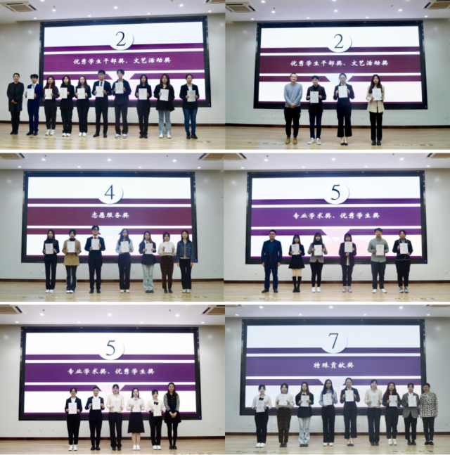随后,学院党总支书记曾庆梅、党总支副书记王美慧、副院长高静、副院长李委明、办公室主任金湜、科研秘书许海潇分别为获得优秀学生干部奖、文艺活动优秀奖、志愿服务奖、专业学术奖、优秀学生奖、特殊贡献奖的同学们颁发荣誉证书。他们或积极参与学生工作、组织丰富多彩的活动;或潜心学业科研,参与课外学术竞赛;或投身志愿活动,勤于社会实践;或携笔从戎,誓要以己之力守护祖国岁月静好,都是麻豆a片 学子们学习的榜样!