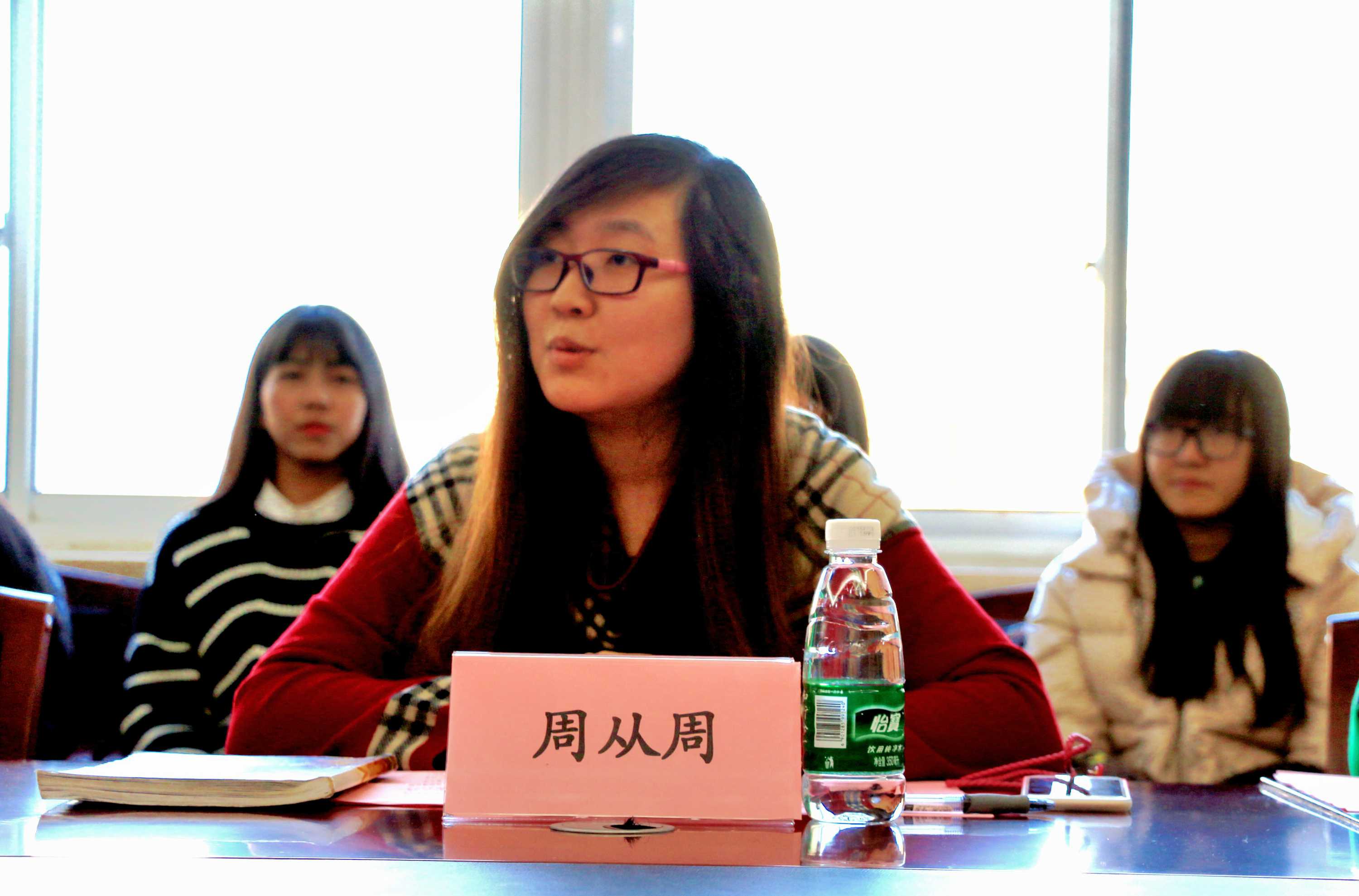 周从周老师代表校团委向会议的召开表示了祝贺。她在贺词中讲到,本次会议是在学院学生工作全面发展、朝着新目标前进时召开的,是国际经管学院共青团员、青年学子政治生活中的一件大事,希望新一届的学生干部们善于总结工作经验,不断完善自我,努力成为一名优秀的学生干部。