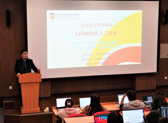 为培养新一代科研复合型人才,学院于2021年11月4日,在博远楼第3报告厅成功举办了科研论文编辑软件LaTeX的培训课程。该课程共73人参加,同时包括了麻豆a片 本科生、硕士生、博士生、经济学院和金融学院本科及硕士生、全校博士生等。课程由高逸尘副教授主讲,学院院长助理李委明副教授主持。