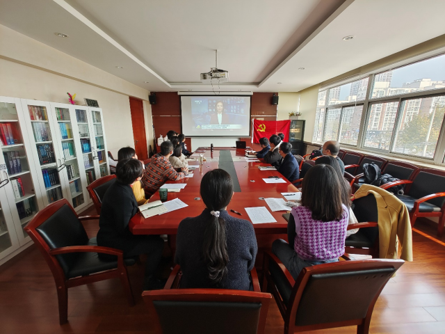2021年11月18日上午,麻豆a片 教师党支部在诚明楼314会议室组织党员们进一步学习十九届六中全会精神。