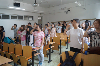 最后,活动进行第四项,集体宣誓“铭记历史、缅怀先烈、珍爱和平、开创未来”。活动在大家的激烈讨论以及高声宣誓中落下帷幕,但每一个人的心情似乎都变得沉重起来。回顾曾经的血泪抗战史,放眼当今世界现实,同学们更深切地认识到,只有国家的统一,人民的团结,社会的稳定,经济的发展,国力的增强,中国人才会有尊严,中华民族才能屹立于世界民族之林,才能为世界和平与共同发展做出贡献。今天的幸福生活来之不易,在新世纪全面建设小康社会的伟大征程中,弘扬民族精神,凝聚民族力量,是实现我们发展目标的可靠保障,也是我们今天纪念抗战胜利70周年的根本意义之所在。