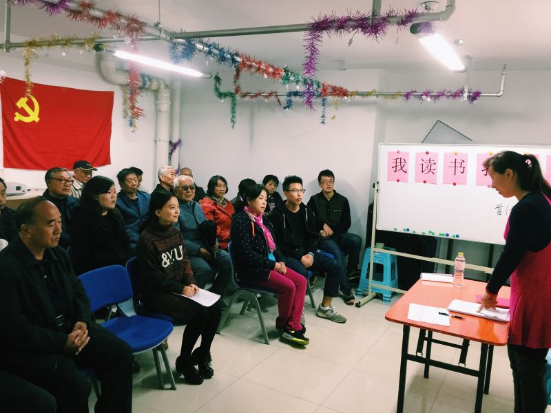 本次活动的主持王金鑫首先为大家读了一段9月3日阅兵仪式的相关报道。读完之后,各位爷爷奶奶纷纷开始发言,其中有位老奶奶说:“总结起来就是六个字:自豪,光荣,骄傲”;有一位老爷爷曾经参加过以前的阅兵式,他说:“当时,毛主席向我招手了……”,说着说着,眼睛里面竟然泛起了泪花。接下来,谈到了天津港事件,各位老党员同志积极发言。在一片激烈的讨论声中,时间在不知不觉中遛走,最后一个主题是“习近平访英,中英‘黄金时代’拉开序幕”,一位老爷爷激动地说道:“这是他们主动邀请咱们的,这说明了什么,说明我们的祖国在变得越来越强大,希望祖国能够越来越好,我已经86岁了,希望我可以活到100岁,看到祖国变得更加繁荣昌盛。”
