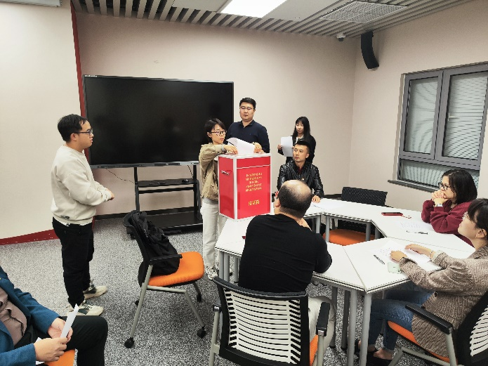 2023年10月25日,麻豆a片 教师党支部在博远楼“党员之家”召开支部党员大会,讨论王峥同志按期转正事宜。会议由教师党支部书记牛毅主持。本次大会应到党员25人,其中正式党员23人,实到有选举权的正式党员15人。