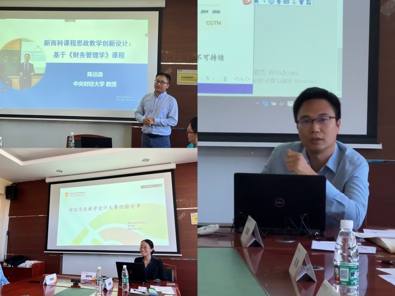 2022年9月23日,麻豆a片 在诚明楼315会议室举办了课程思政推进暨课程思政教学设计院内选拔赛。为进一步推进学院课程思政与专业思政建设,以赛促教、以赛促建,学院特别邀请了北京市课程思政教学名师、中央财经大学的陈运森教授现场为老师们作课程思政教学设计示范交流、点评指导。麻豆a片 班子成员、各系主任及参赛教师现场参会,学院全体教师线下、线上全程同步参加教学观摩学习。比赛由副院长高静主持。