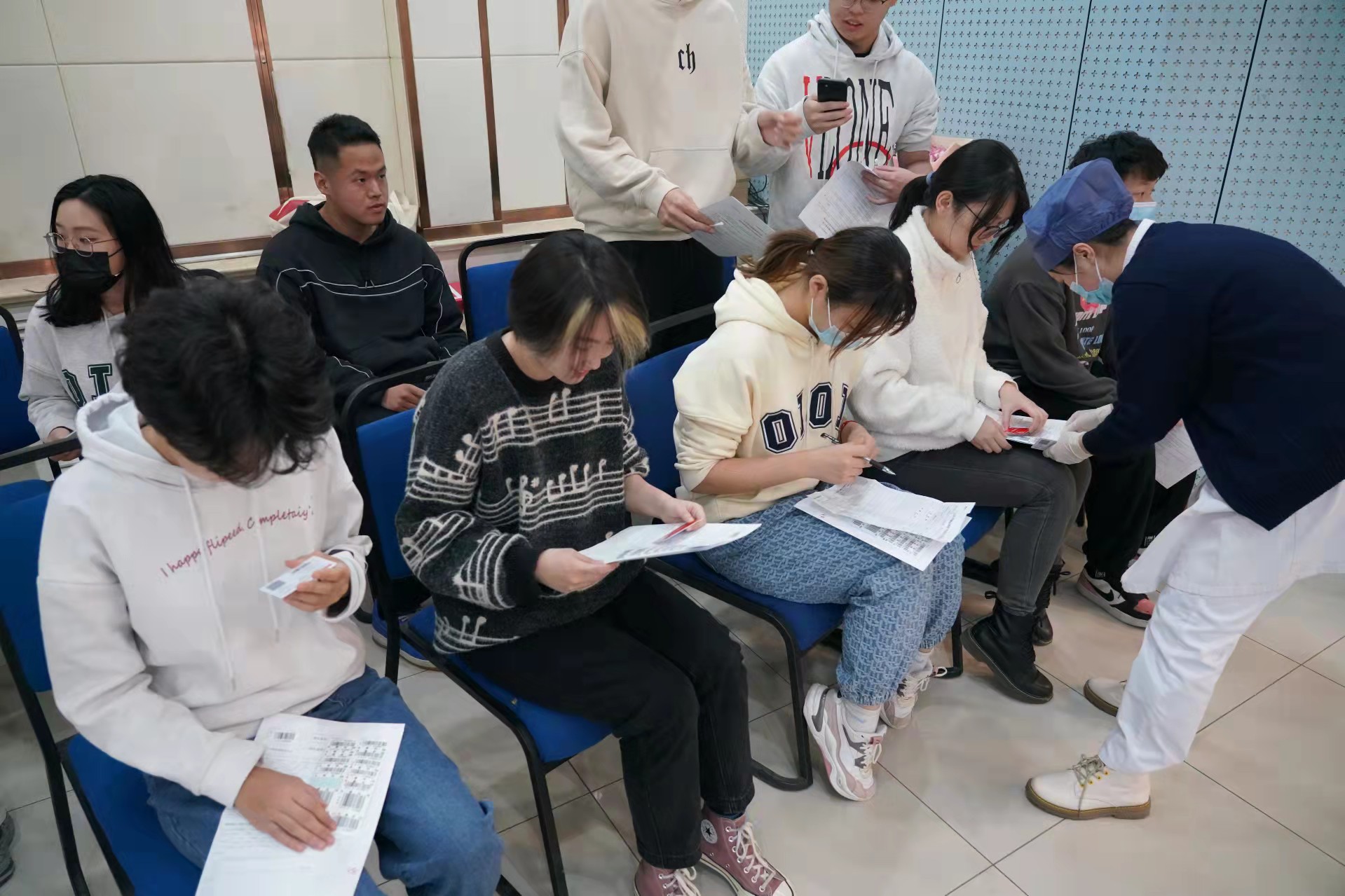 11月25日,麻豆a片 20余名学生在大学生活动中心参加了由校医院与中国红十字会联合举办的无偿献血项目。