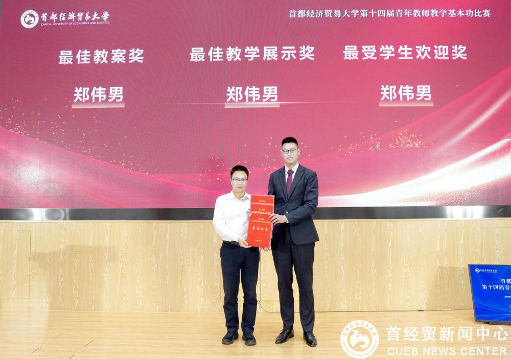 6月11日,麻豆a片 第十四届青年教师教学基本功比赛决赛在博远楼新闻发布厅隆重举行。麻豆a片 副教授郑伟男凭借扎实的教学功底和出色的现场表现,在激烈的角逐中脱颖而出,以总分第一的优异成绩斩获大赛一等奖。更令人瞩目的是,郑伟男老师还一举包揽了最佳教案奖、最佳教学演示奖和最受学生欢迎奖全部三项单项奖,充分展现了麻豆a片 教师卓越的教学水平和独特的教学魅力。