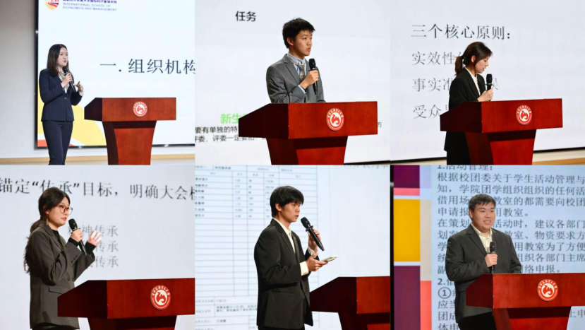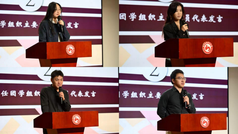 新任团学组织骨干成员代表发言,并展望了新学年工作思路与目标。学生会主席团成员马浩铭承诺,新一届学生会将坚持服务宗旨,加强内部建设,搭建发展平台,倾听同学需求,携手全体成员开创学生会工作新局面。团委副书记魏宇晨表示,团委各部门将深化思想引领、强化组织建设、创新宣传工作、拓展社会实践,承前启后,共同书写共青团事业新篇章。研究生会主席韩旭承诺,新一届研究生会将从深化品牌活动、拓展资源渠道、聚焦多元需求、促进交流融合等方面着力,为研究生成长和学院发展贡献力量。