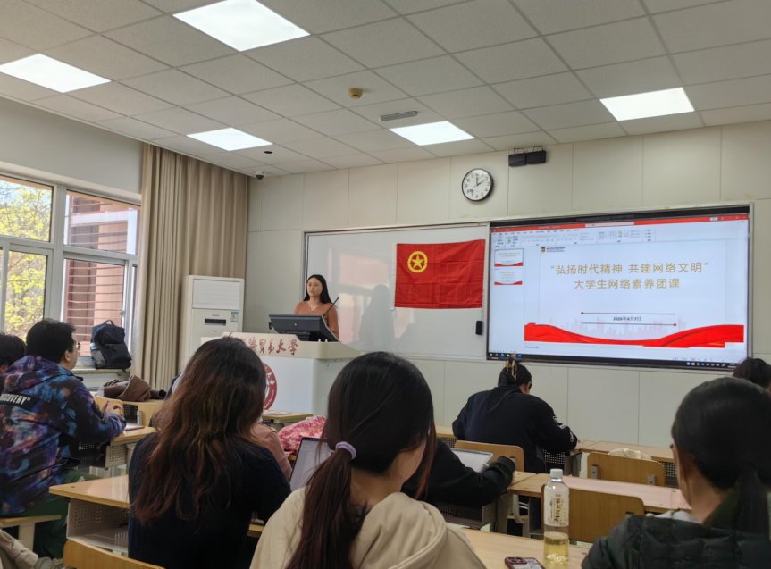 张雅淇首先以“弘扬时代精神,共建网络文明”为主题讲授大学生网络素养团课。她聚焦大学生常见网络问题,围绕信息辨别与诈骗防范、网络安全与隐私保护、文明上网与网络道德等方面进行讲解,引导同学们树立正确价值观、树牢纪法意识,保持清醒、理性思考,鼓励团员青年厚植文化底蕴,积极传播正能量,做有底线、有判断、有边界、有担当的网络文明建设者与守护者。