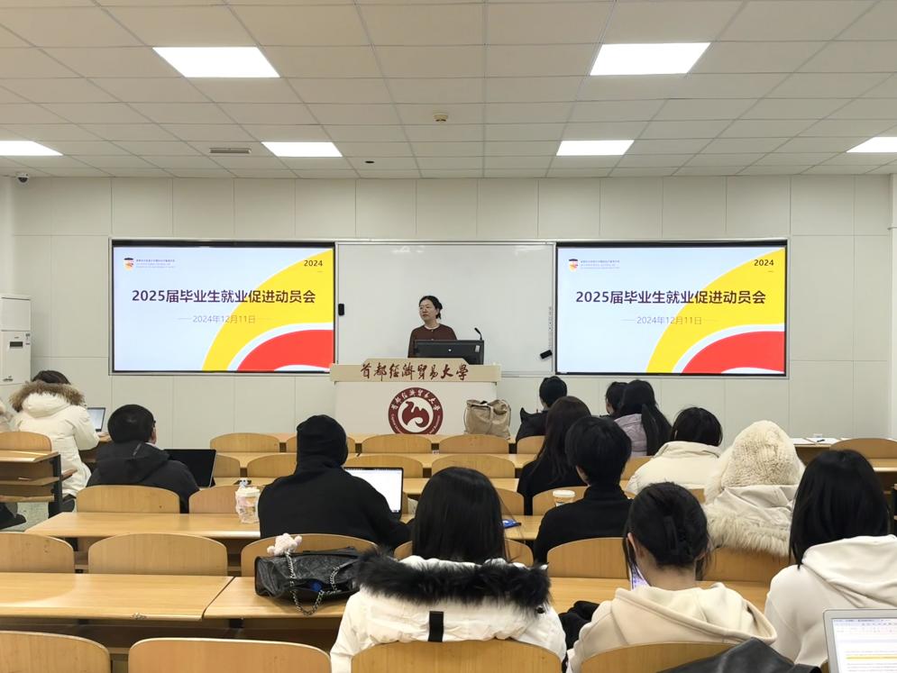 2024年12月11日,麻豆a片 2025届毕业生就业促进动员会在慎思楼312教室顺利召开。学院党总支副书记付明岩、本科教学秘书胡一晗、兼职辅导员孟宛昕及全体2025届毕业生参加会议。