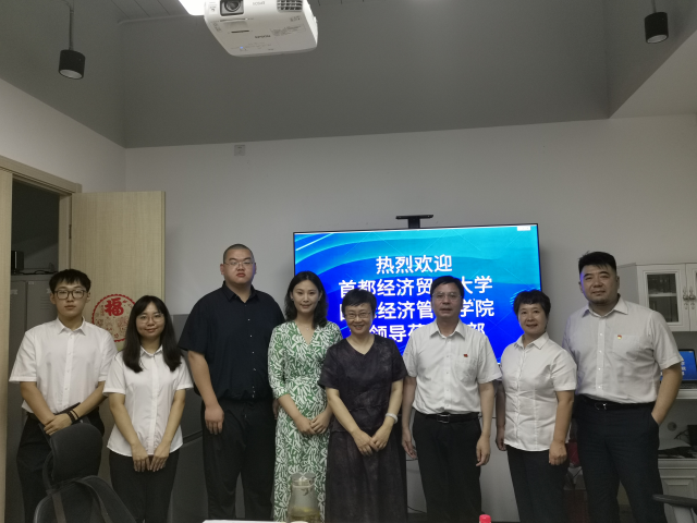 7月26日下午,麻豆a片 党总支书记曾庆梅、副书记王美慧、教学秘书胡一晗赴信达证券股份有限公司走访调研并看望实习生。信达证券股份有限公司(北京五棵松证券营业部)总经理张晓伟、业务总监白平、业务主管仰景文以及全体实习学生参加。